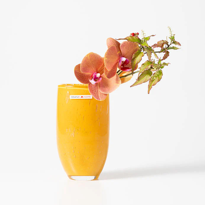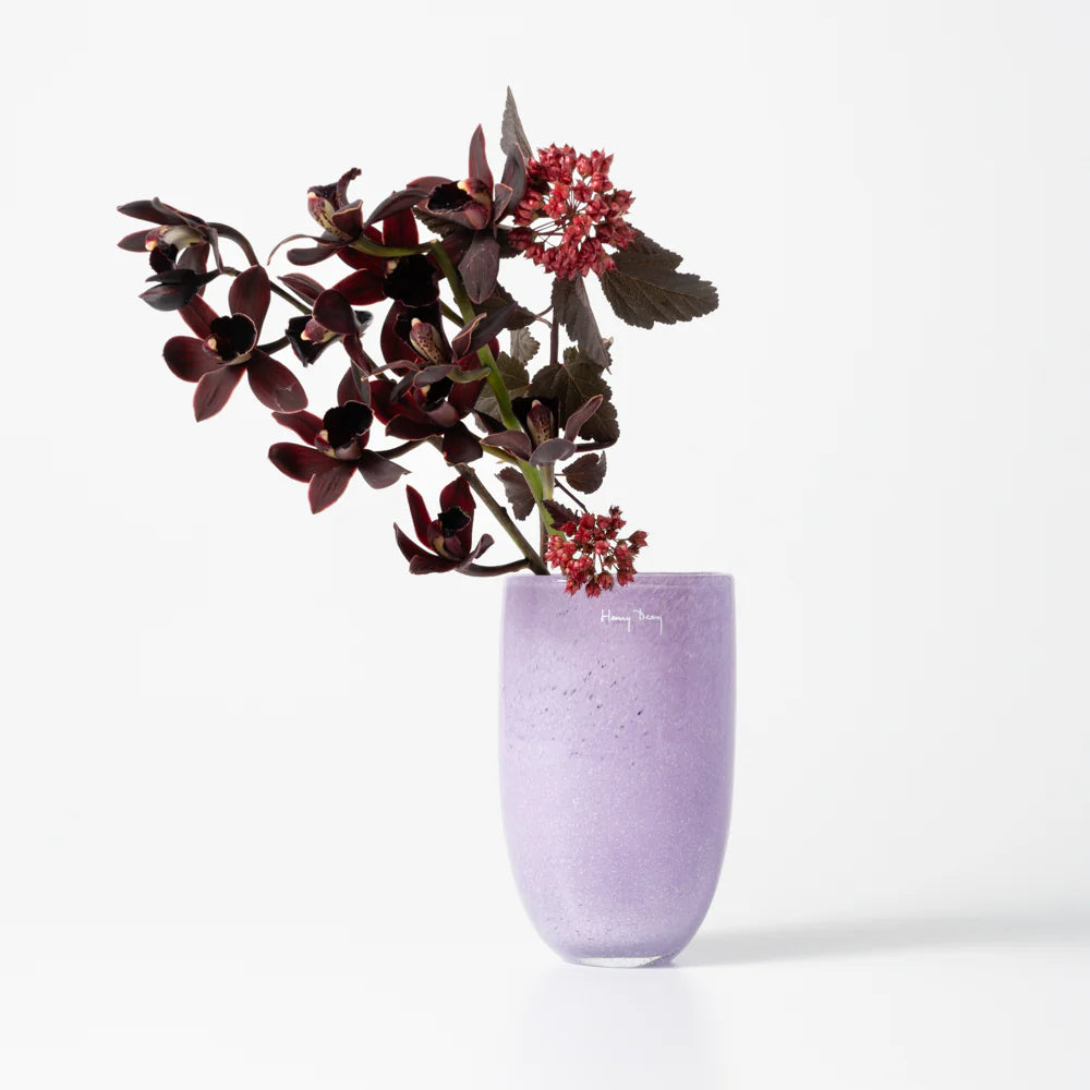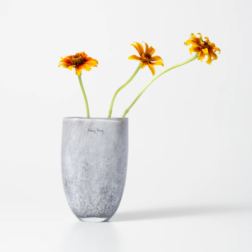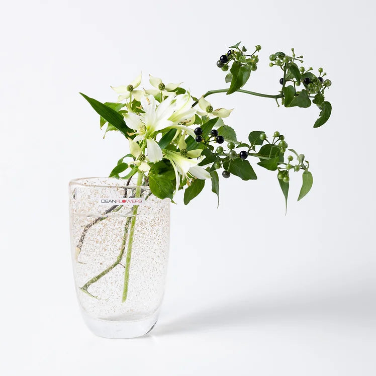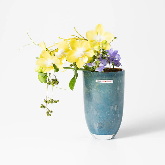 横に広がるフォルムの「Joe(ジョー)」は、小ぶりながらガラスの美しさを堪能できる花器。